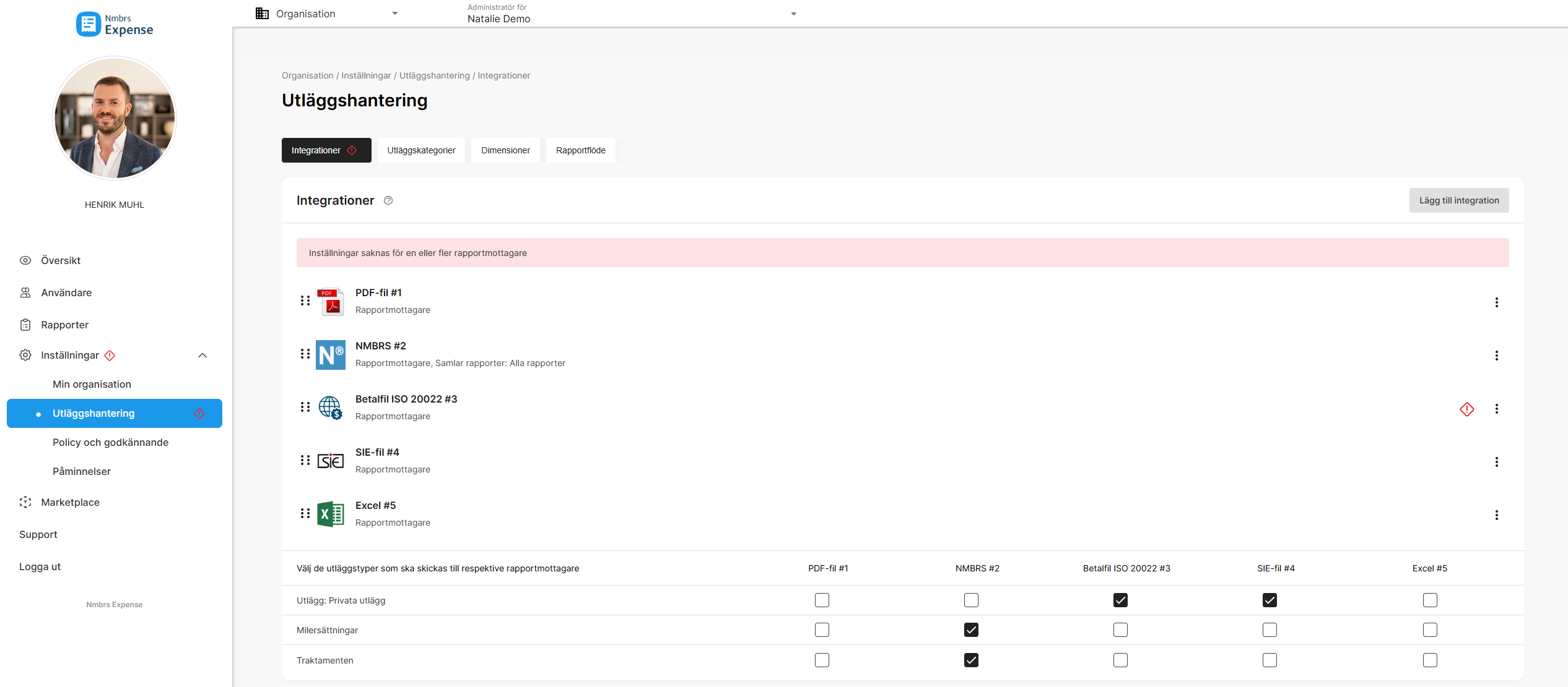 Gå till din organisation och välj Inställningar → Utläggshantering → Integrationer.