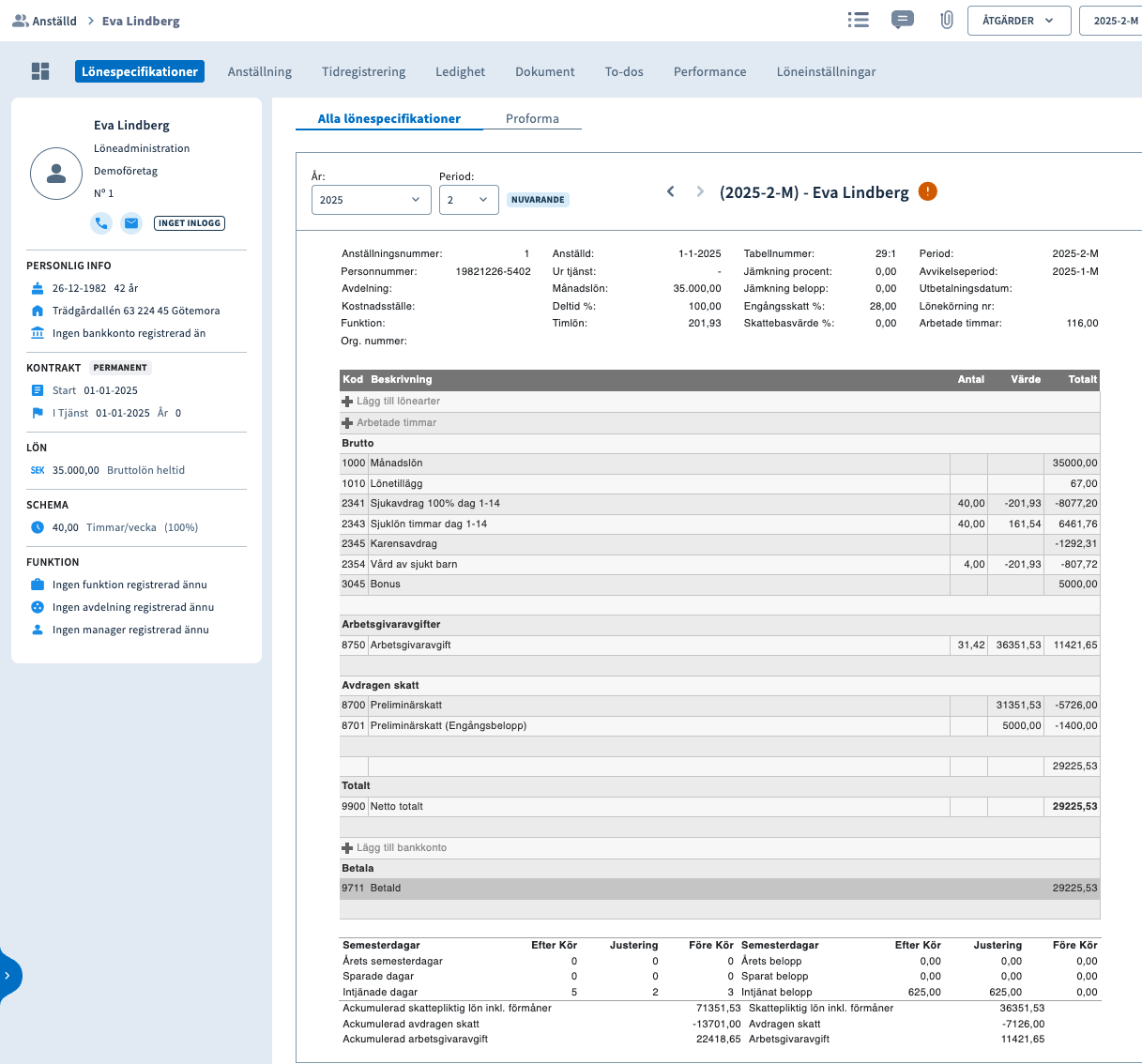 Den interaktiva lönespecifikationen gör det möjligt att kontrollera och göra justeringar utan att behöva göra en lönekörning först. Justeringar genomförs omedelbart och kontrolleras automatiskt.