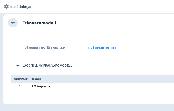 Under fliken Frånvaromodell kan du skapa nya modeller, se en översikt över alla dina modeller samt radera dem.
