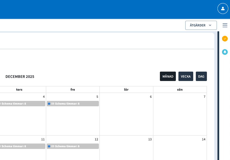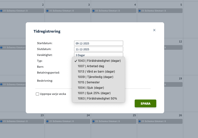 Därefter kan du se avvikelsen i kalendern, om du har gjort fel och behöver ta bort registreringen kan du klicka på papperskorgen längst till höger.