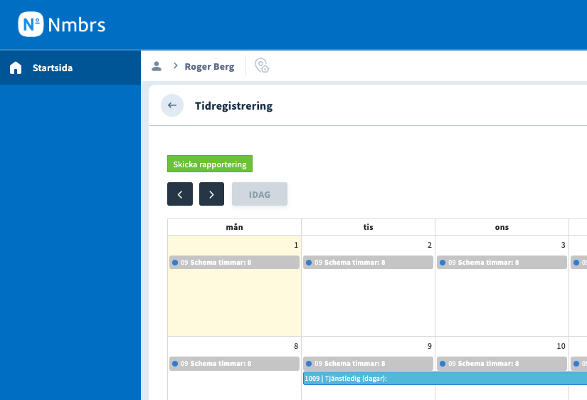 När du har rapporterat färdigt tiden klickar du på Skicka rapportering och inväntar attest från din chef eller en administratör.
