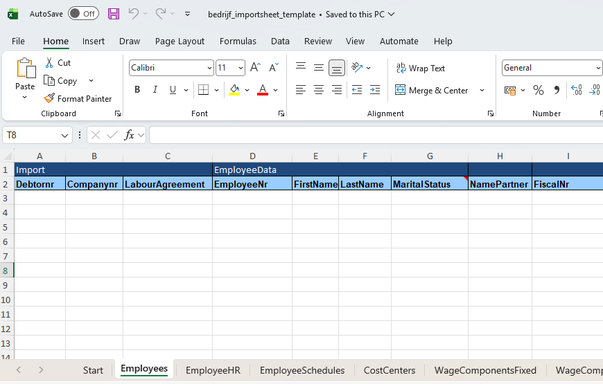 - Lämna inga tomma rader mellan anställda, informationen under den tomma raden kommer inte att importeras.