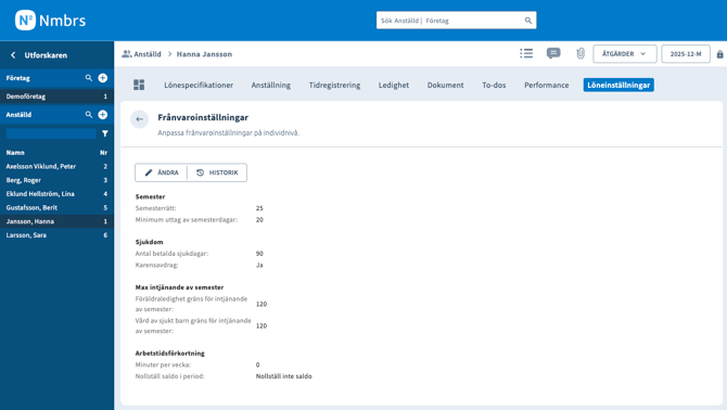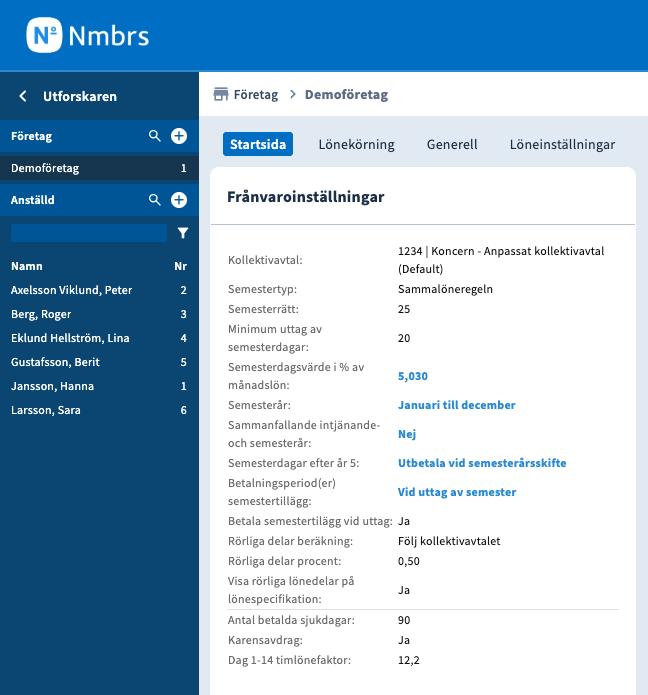 I Nmbrs kan man ställa in inställningar för karensavdrag på alla tre nivåer.