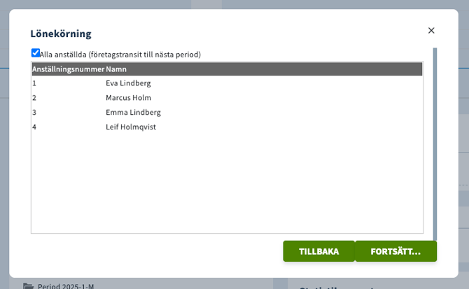 I nästa steg kan du välja om du vill att alla eller endast någon eller några medarbetare ska ingå i lönekörningen.