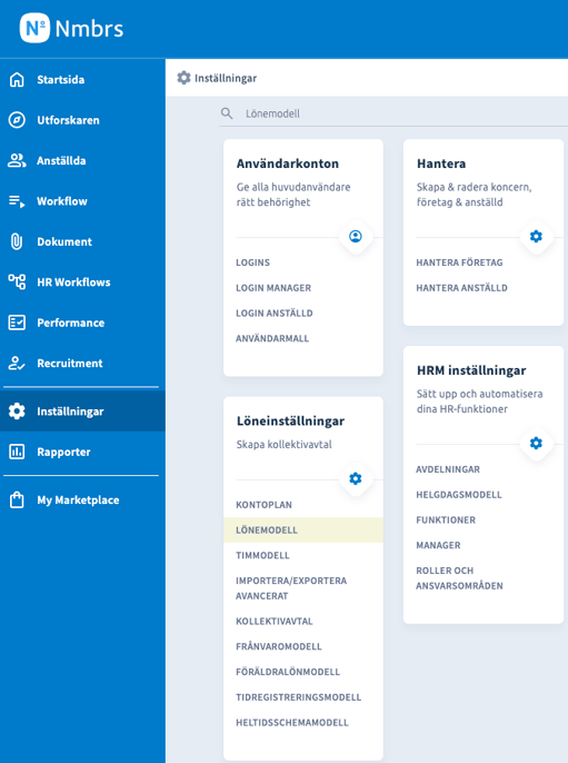 Du finner lönemodellen under fliken Inställningar → Löneinställningar → Lönemodell.