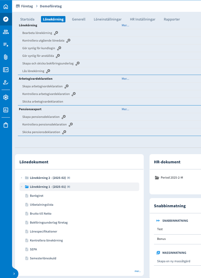 När en kontoplan är kopplad till företaget och efter att du har utfört en lönekörning hittas bokföringsunderlagen bland lönedokumenten. Läs mer om lönedokument här.